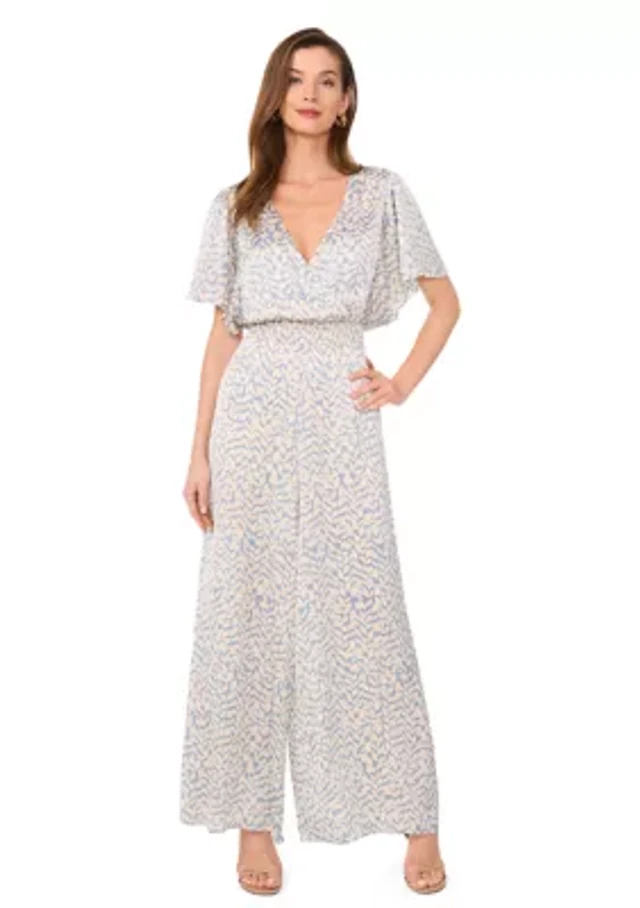 Msk Petite Printed Flutter Short-Sleeve Jumpsuit