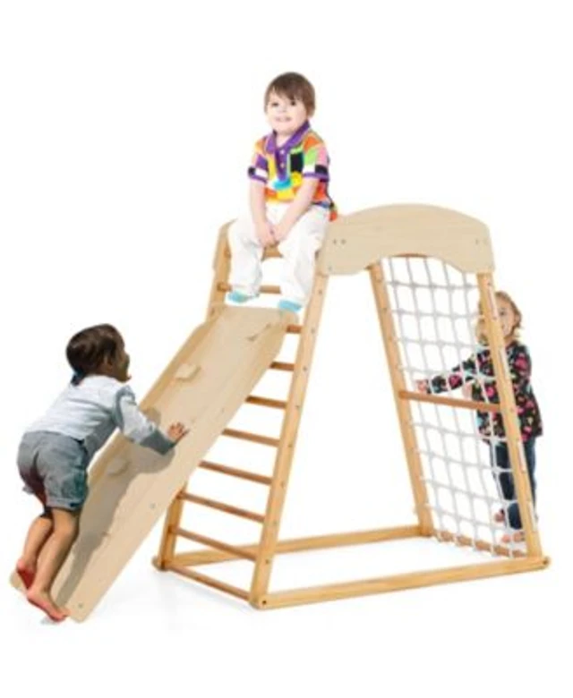 Sugift 4-in-1 Wooden Jungle Gym with Climbing Wall, Slide & Montessori-Style Design