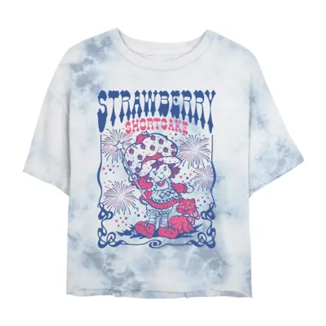 Strawberry Shortcake Cropped Tee Womens Juniors Crew Neck Short Sleeve Regular Fit Graphic T-Shirt