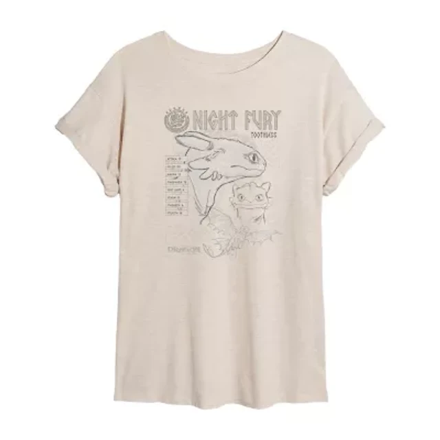 How To Train Your Dragon Sketch Tee Womens Juniors Crew Neck Short Sleeve Oversized Graphic T-Shirt