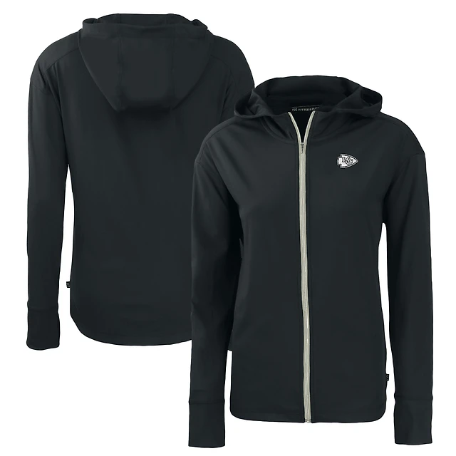 Women's Cutter & Buck Black Kansas City Chiefs Helmet Logo Adapt Eco Knit Hybrid Recycled Full-Zip Hoodie