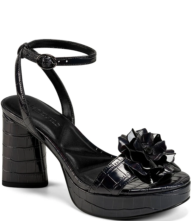 KARL LAGERFELD PARIS Haden Croc Print Floral Ornament Ankle Strap Dress Sandals