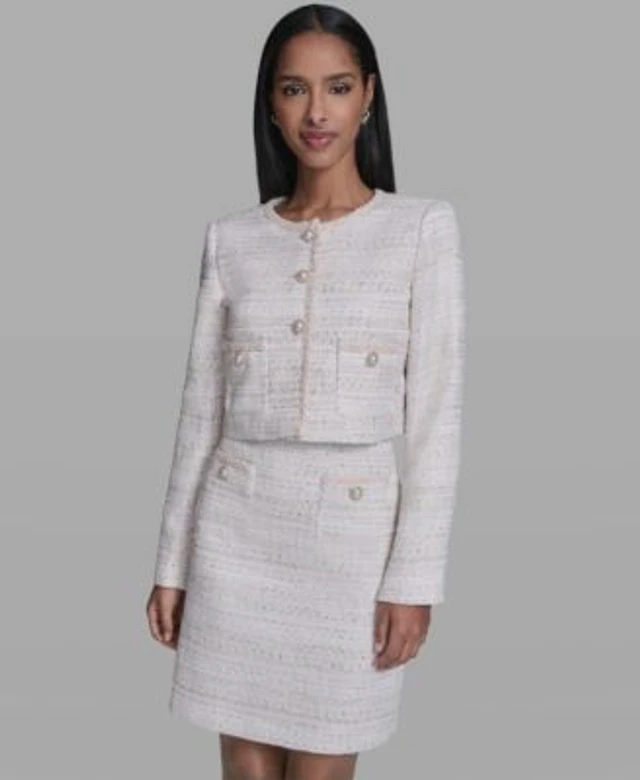 Karl Lagerfeld Paris Women's Cropped Tweed Button Front with Jacket