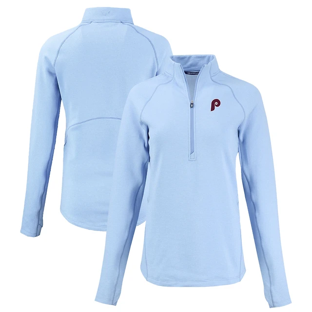 Women's Cutter & Buck Heather Light Blue Kansas City Royals Peshastin Eco Fleece Recycled Raglan Half-Zip Top