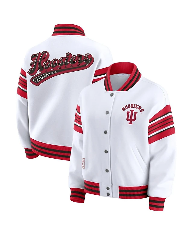 Wear by Erin Andrews Women's White/Maroon Mississippi State Bulldogs Satin Stitch Full-Snap Fleece Sweatshirt Jacket