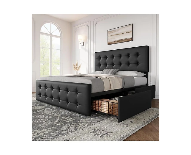 Gaomon Bed Frame With 4 Drawers Platform Bed Frame With Headboard Metal Bedframe With Steel Slat Support No Box Spring Needed Easy