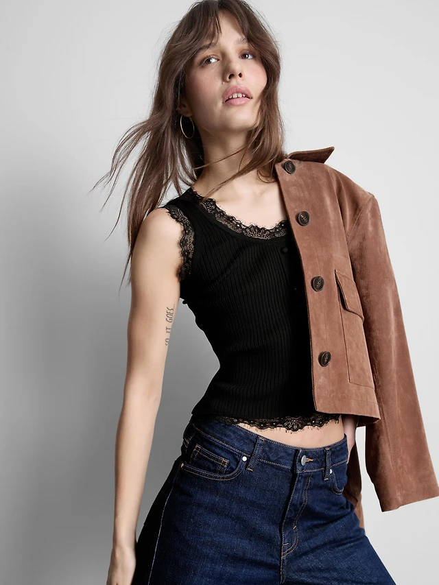 Jacquard Striped Square Neck Puff Sleeve Tee