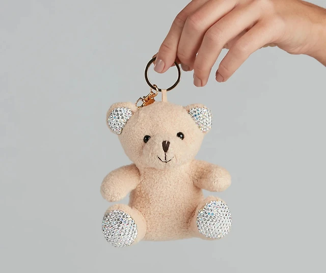 Rhinestone Plush Teddy Bear Keychain