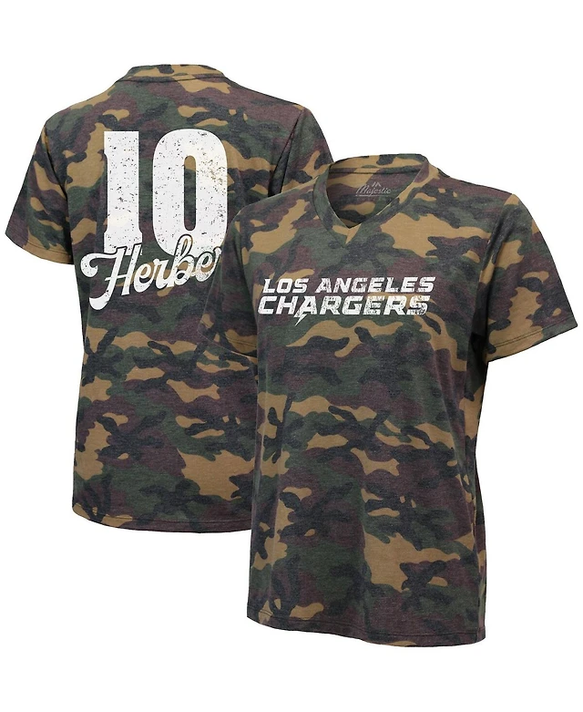 Women's Justin Herbert Camo Los Angeles Chargers Name and Number Tri-Blend V-Neck T-shirt