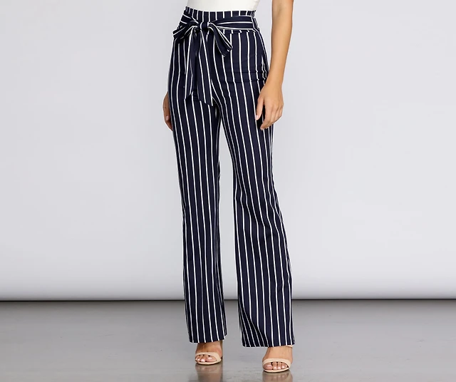 Petite Tan Stripe Back Yoke Pants