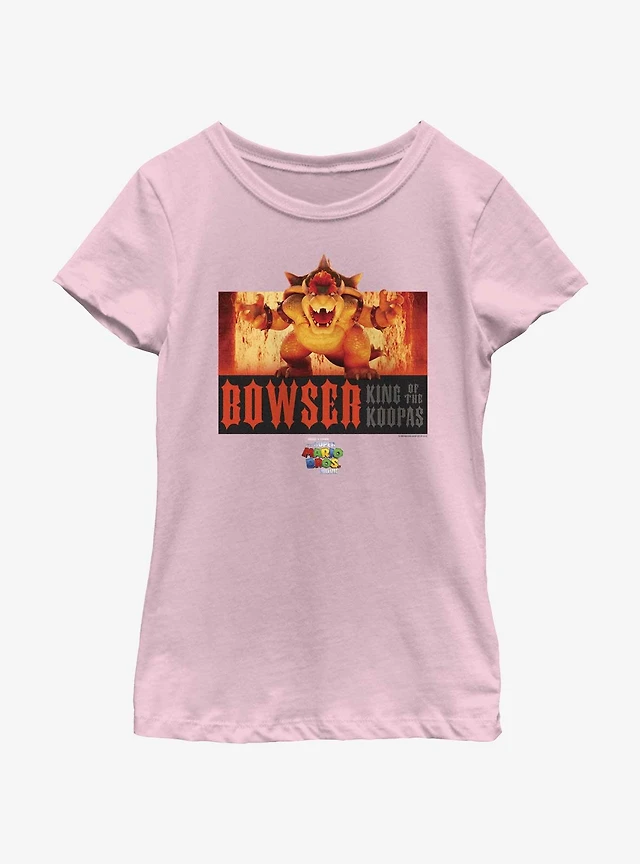 The Super Mario Bros. Movie Flaming King Bowser Poster Youth Girls T-Shirt