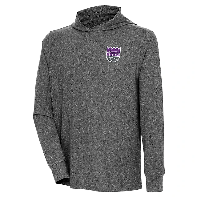 Men's Antigua Heather Black Sacramento Kings Saga Long Sleeve Hoodie T-Shirt