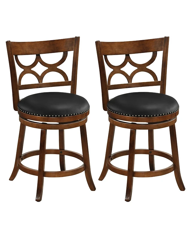 24'' Dining Bar Stool Set of 2 Counter Height Padded Seat Wood Frame Kitchen