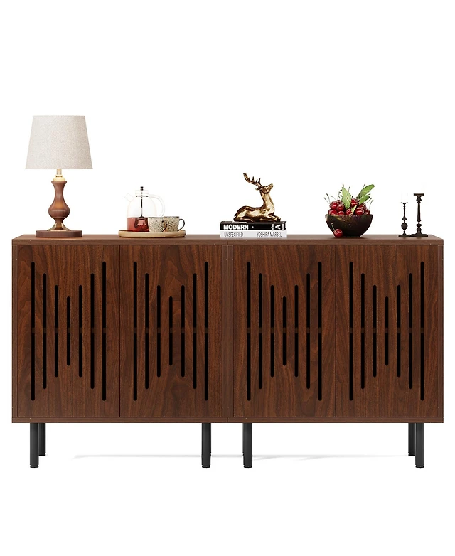 Tribesigns Sideboard Buffet Cabinet with Storage, 57.5" Farmhouse Coffee Bar Cabinet with 4 Doors & Shelves, Set of 2 Wood Credenza Buffet Table