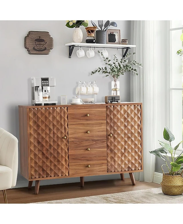 Streamdale Furniture 54" Retro Buffet Cabinet - 4-Door Fluted Sideboard