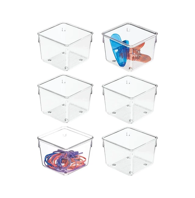 House Day Clear Plastic Drawer Organizers with Non-Slip Silicone Base for Makeup & Bathroom 6 Pack