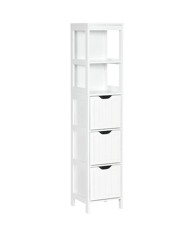 Basicwise White Tall Standing Bathroom Linen Tower Storage Cabinet for Bathroom and Vanity