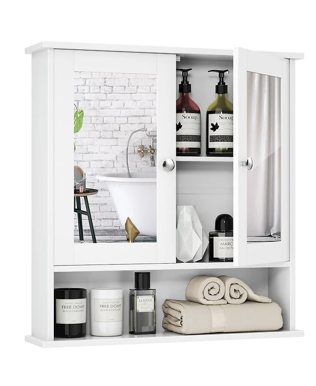 Slickblue Wall-Mount Storage Cabinet with Mirror and 6 Open Shelves for Bathroom