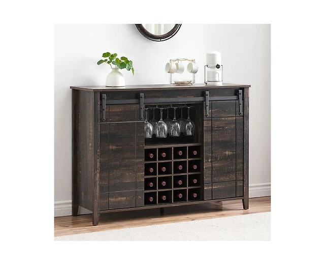 Streamdale brown walnut color modular wine bar cabinet Buffet Cabinet with Hutch for Dining Room