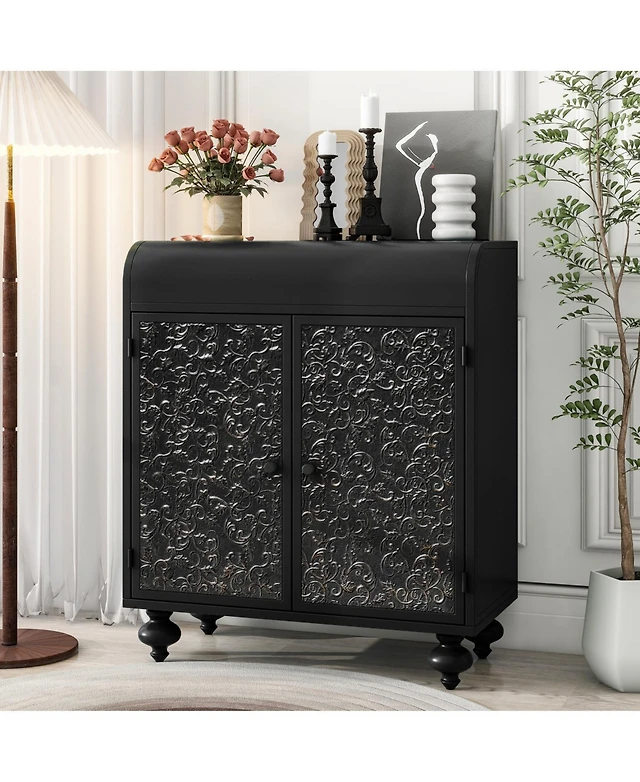 Casainc Retro Storage Cabinet Sideboard Door with Circular Groove Design Round Metal Handle