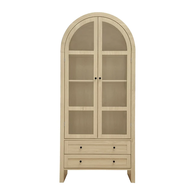 Casainc 71" Tall Arched Kitchen Pantry Cabinet with Glass Doors, Adjustable Shelves & 2 Large Drawers
