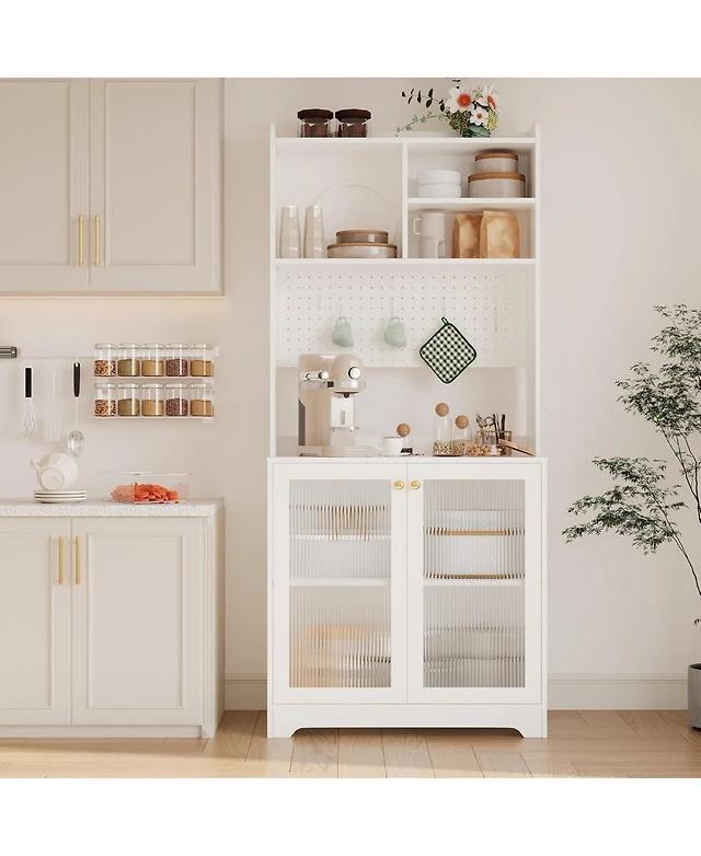 Kitchen Pantry Cabinet with Translucent Fluted Doors & Adjustable Shelf