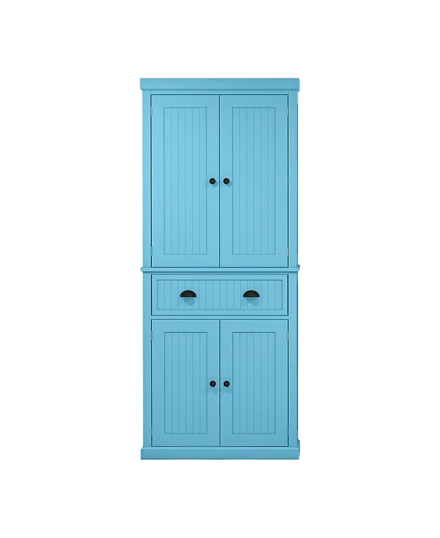 Streamdale Furniture Blue Kitchen Pantry Cabinet with Glass Doors & Drawers
