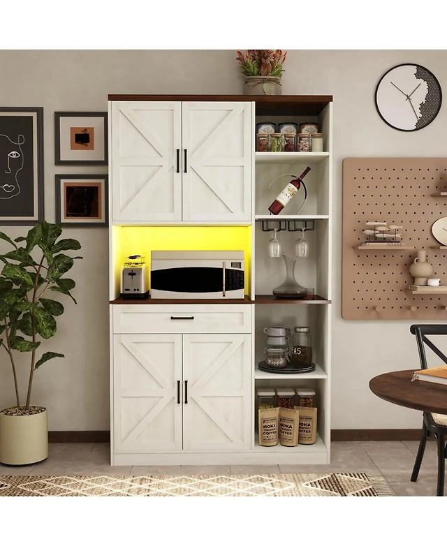 gaomon "22; Kitchen Pantry Cabinet with Microwave Shelf, Freestanding Hutch Cabinet with 3 Drawers and Led Lights, Tall Storage Cabinet with Counterto