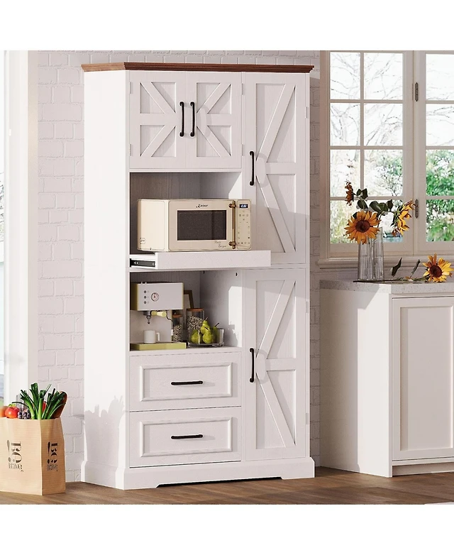 Streamdale Farmhouse Pantry Cabinet, Pull-Out Shelves, 4 Doors - White