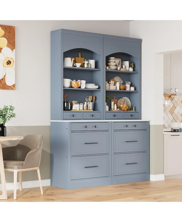 Streamdale Green Kitchen Storage Cabinet with Drawers, Shelves, Glass Doors