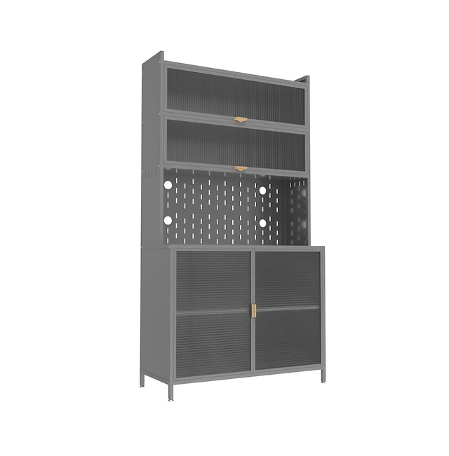 Streamdale 71" Tall Kitchen Cabinet with Reeded Glass Doors and Microwave Stand