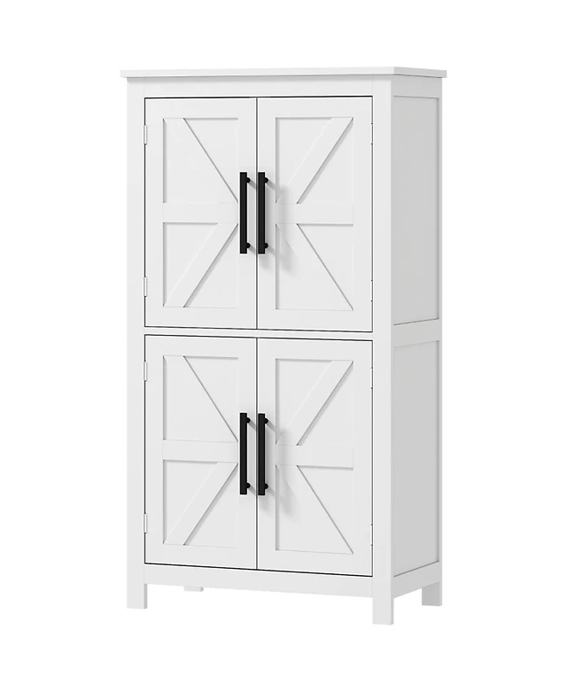 White 4-Door Storage Cabinet with Adjustable Shelves