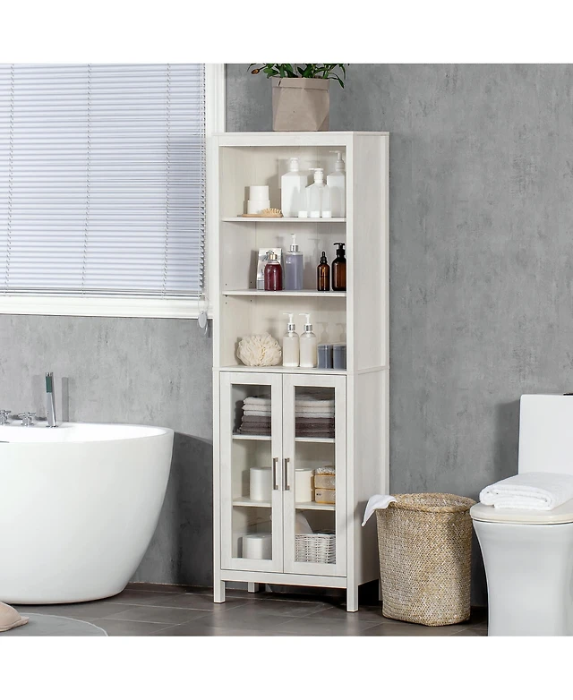 Homcom Tall Bathroom Storage Cabinet with Rat Doors,