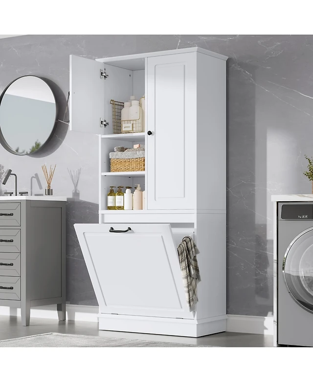 Tall Bathroom Storage Cabinet, Freestanding Storage Cabinet with Hook and Adjustable Shelf, Mdf Board, White