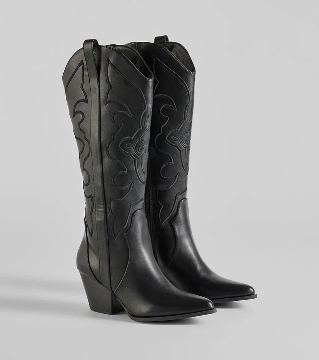 Dingo Women's High Cotton Leather Stacked Heel Cowboy Boots