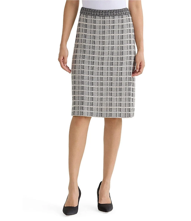 Ming Wang Contrast Stitch Coordinating Tweed Knit A-Line Skirt