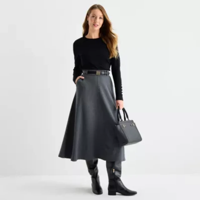 Liz Claiborne Womens Tall Mid Rise Midi A-Line Skirt