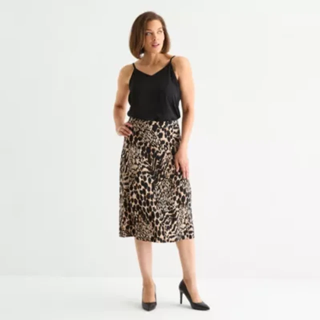 Leopard Print Stretch Satin Midi Skirt