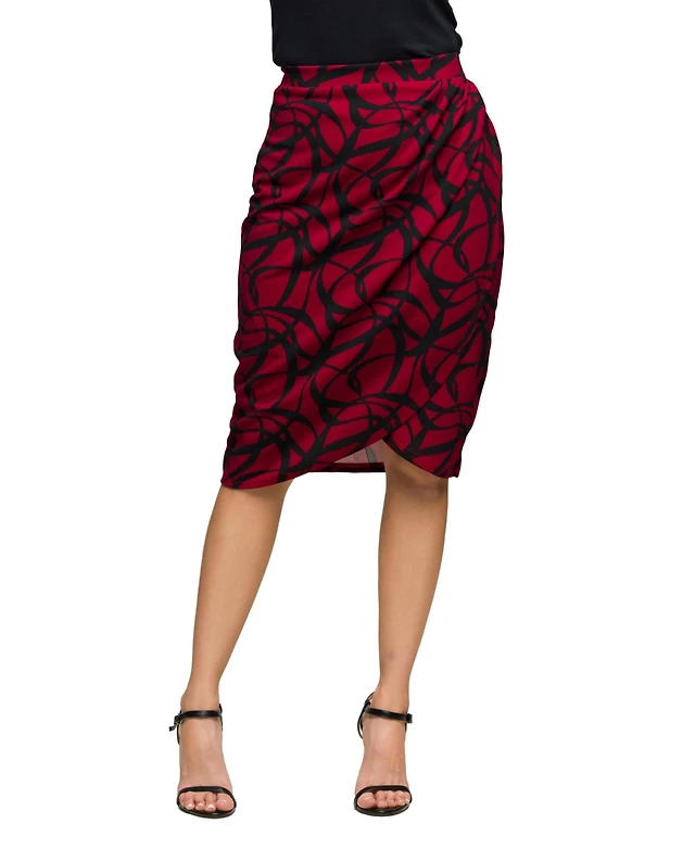 24seven Comfort Apparel Plus Size Print Comfortable Elastic Waist Knee Length Skirt