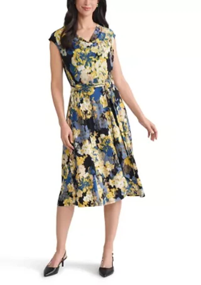 Kasper Plus Printed Knit Faux-Wrap Belted Dress