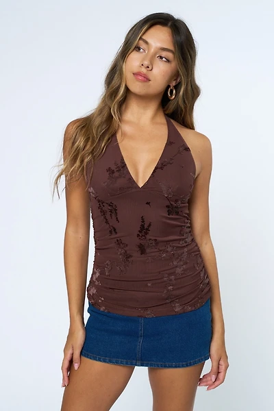 Third Charm Ashtin Floral Knit Halter Top