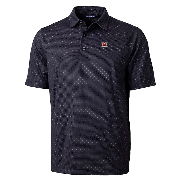 Men's Cutter & Buck Black Miami University RedHawks Pike Double Dot Print Stretch Polo