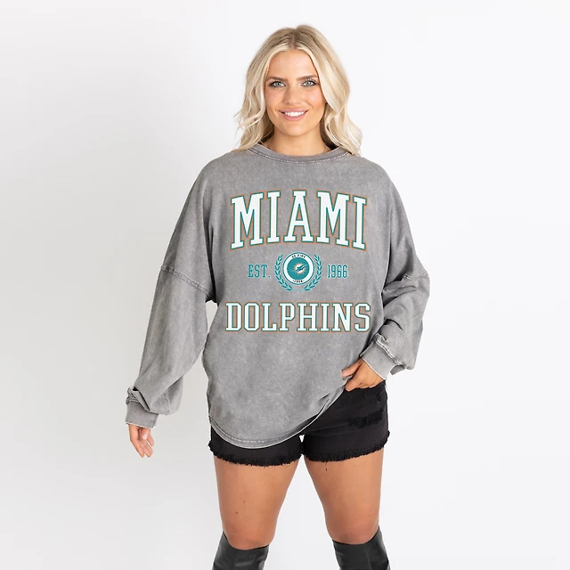 Women's Gameday Couture Gray Miami Dolphins Oversized Final Score Snow Wash Long Sleeve T-Shirt