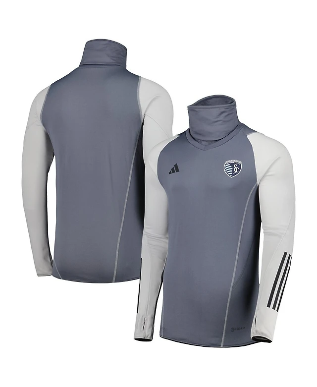 Adidas Men's 2023 Player Gray Sporting Kansas City Travel Long Sleeve Polo Shirt