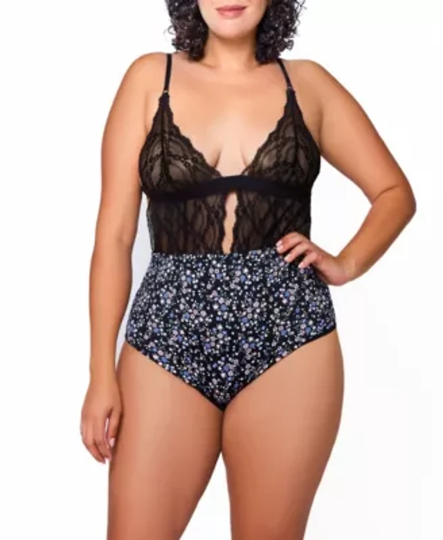 Women's Odette Dot Mesh and Lace Soft Cup Teddy with Back Opening Thong