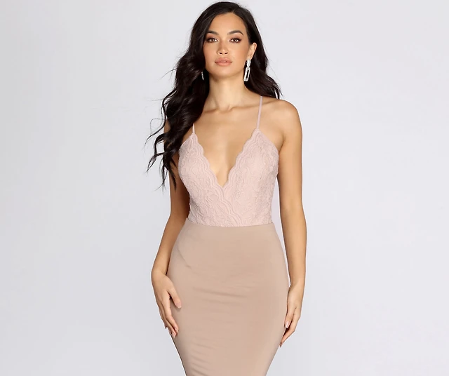 Lace Plunge Crossback Bodysuit