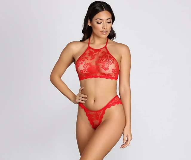 iCollection Women's 2 Piece Soft Cup Lace Bralette Lingerie Set