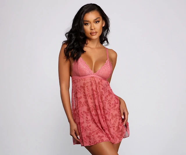 Plus Mesh & Lurex® Lace Babydoll Chemise