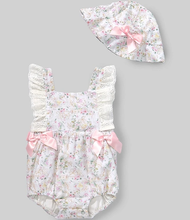 Angel Dear Baby Girls Lace Detail Rose Abundance Print Sunsuit Romper