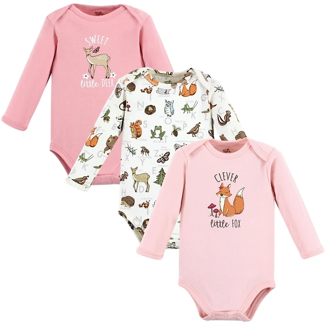 Touched by Nature Baby Girls Organic Cotton Long-Sleeve Bodysuits Woodland Alphabet 3-Pack